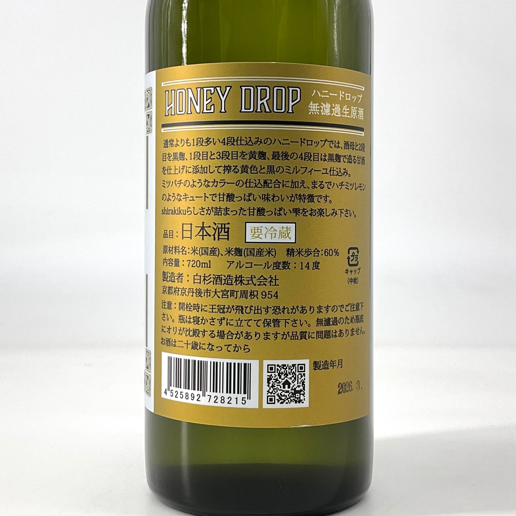 〈無濾過生原酒〉shirakiku HONEY DROP ハニードロップ 720ml