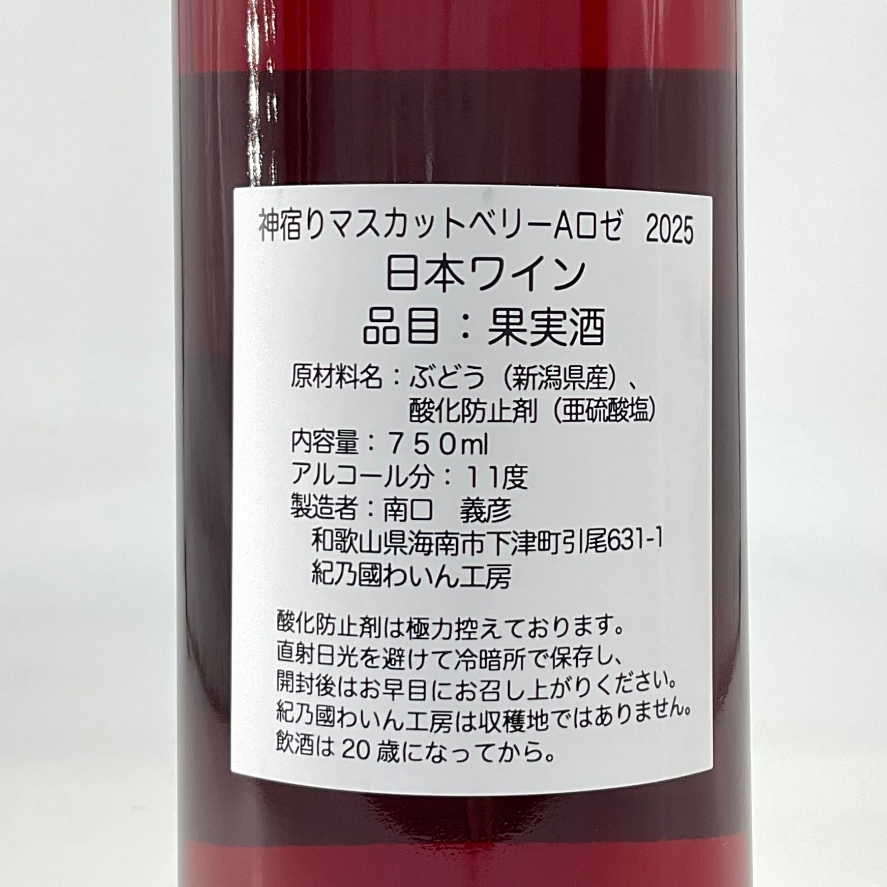 アルコール度数:11% 原材料:ぶどう(新潟県産)、酸化防止剤(亜硫酸塩)